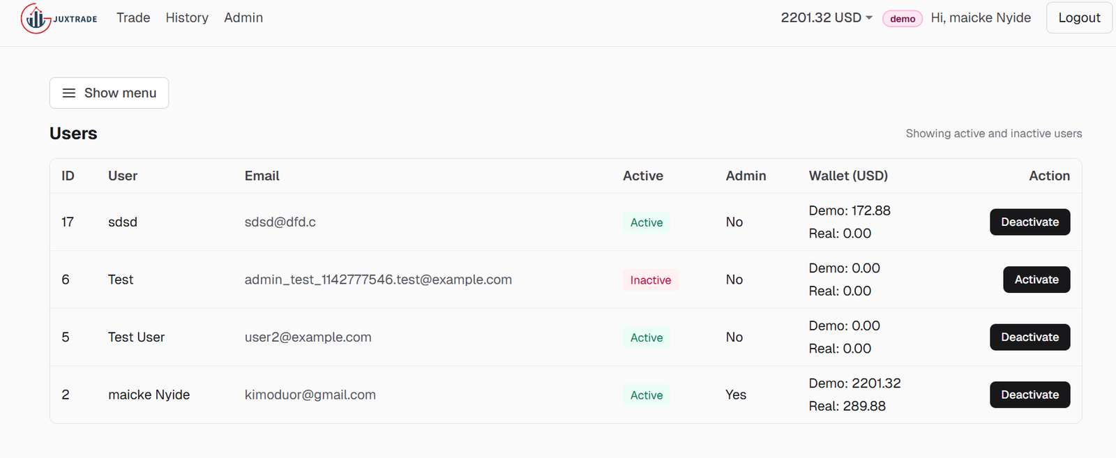 The system includes authentication and account management features that allow users to register, log in, and manage their trading activities securely. Access to the trading interface is restricted to authenticated users through protected routes. Session management ensures that user activities remain secure and consistent during each trading session.